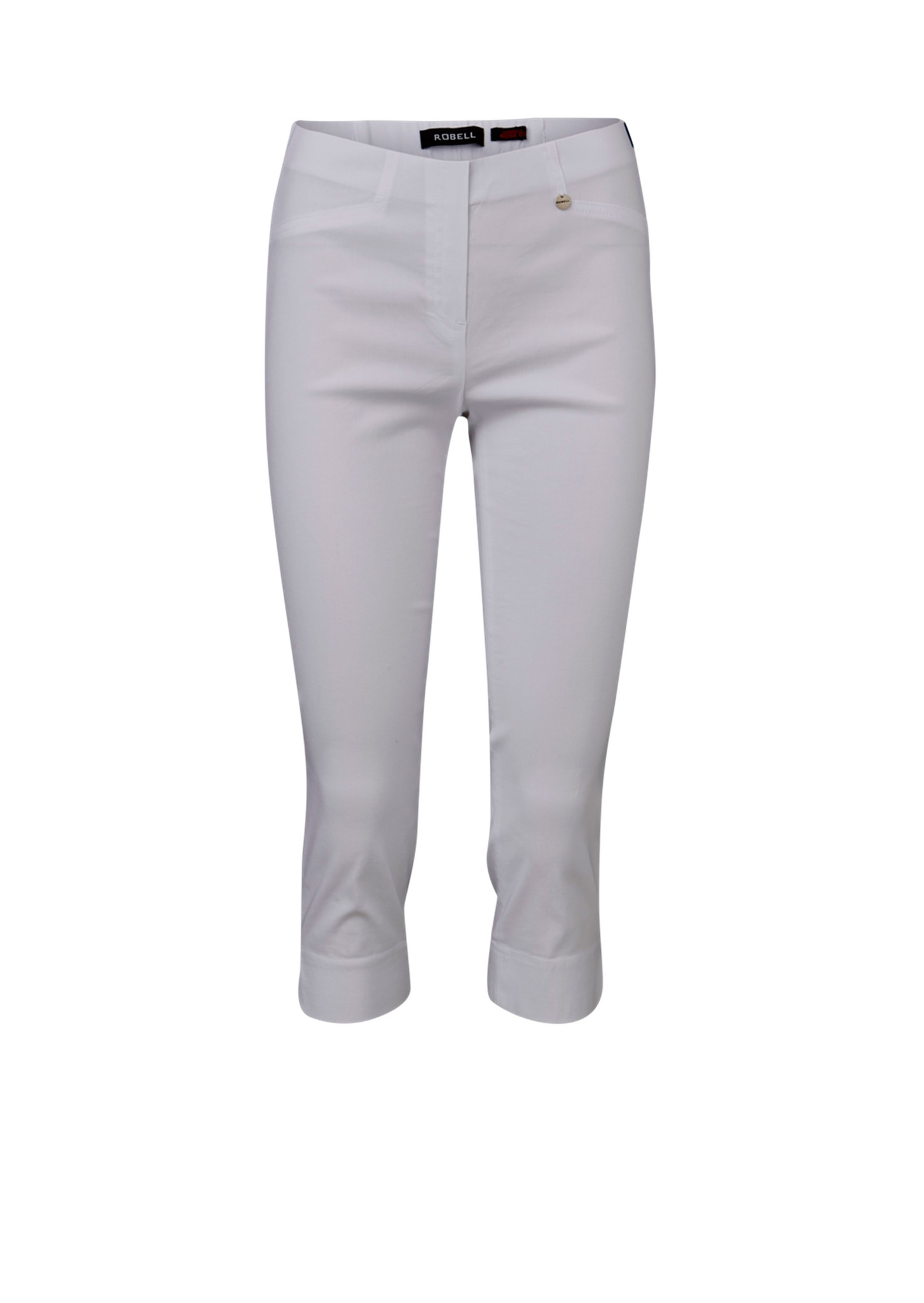 Robell Capri(in een mooie bengalin kwaliteit)Tailleband rondom elastischBinnenbeenlengte 55 cmSupercomfortabele bengaline stretch kwaliteit72% katoen / 24% polyester / 3% elastaanWASSEN OP 30º